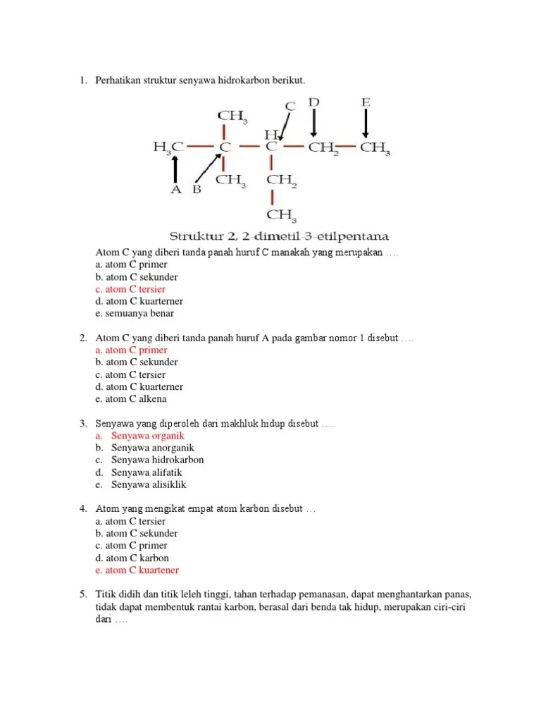 Atom c kuarterner adalah jika mengikat 4 atom c yang lain... Atom c tersier, adalah atom karbon yang terikat langsung pada 3 atom karbon yang lain. Atom karbon (c) sekunder berjumlah 3 (yang bertanda 2°).