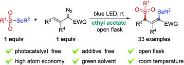 Tady Visible Light Driven Radical 1 3 Addition Of Selenosulfonates To Vinyldiazo Compounds Green Chemistry Rsc Publishing